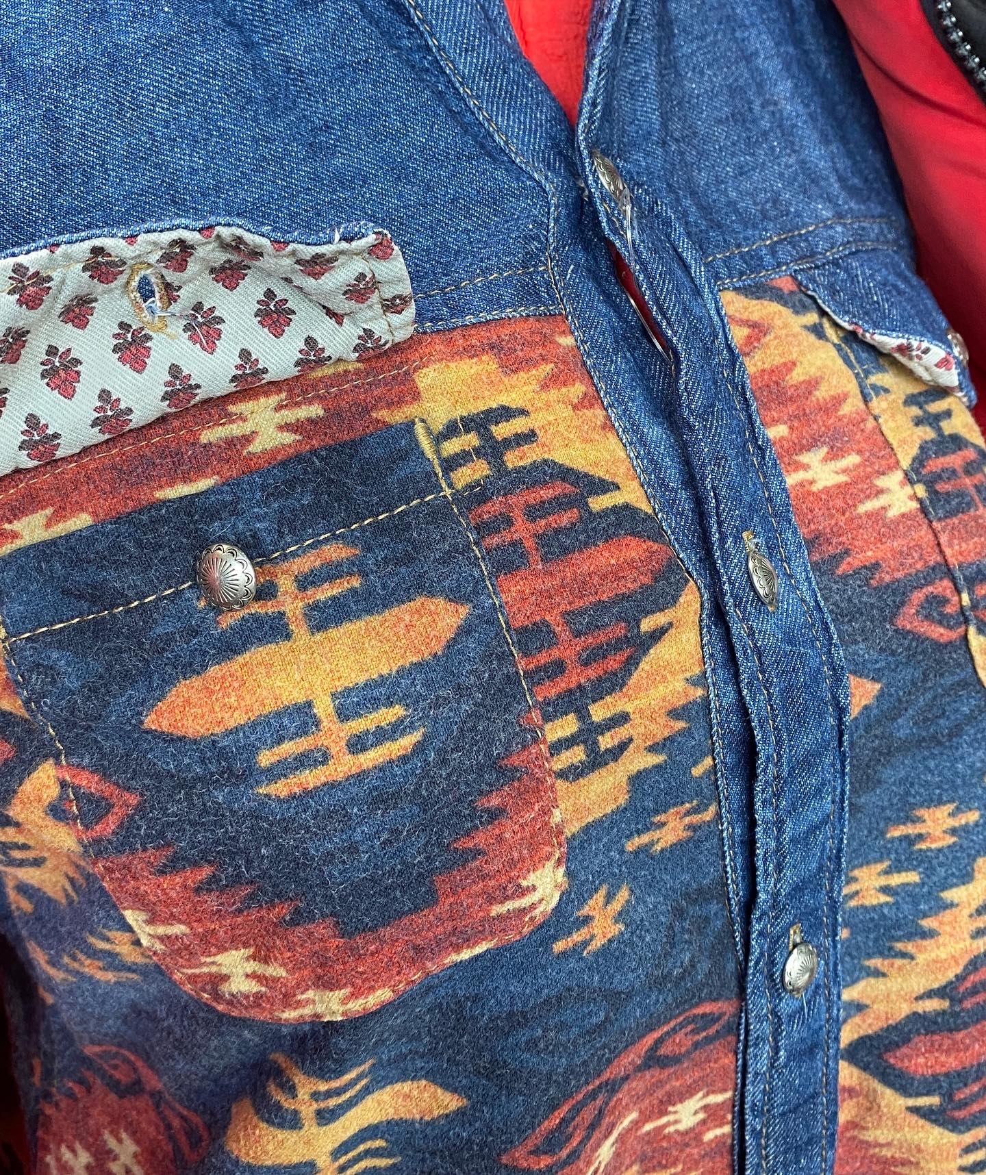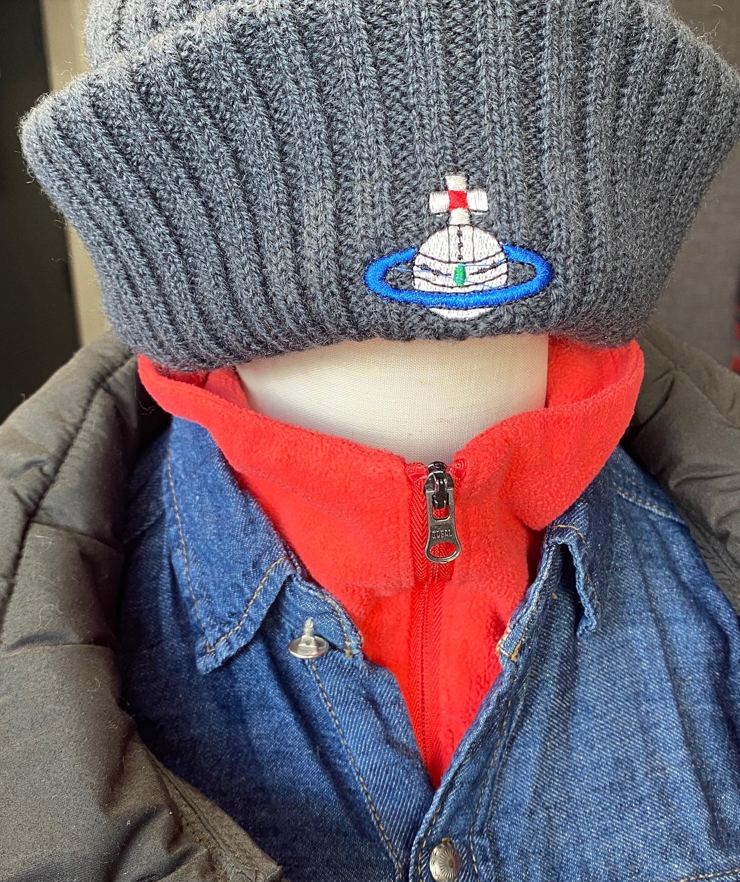 スキーダウンJKTとガウチョタイプのスウェットパンツで、題して☝️私をスキーに連れてって⛷スタイル😅インナーには発色の良いマイクロフリース、スポーツスポーツしないように、ネイティブパターン/インディゴ切り替えのシャツを羽織りに、ヘッドウェアはヴィヴィアンウエストウッドMANのニットキャップ🧶