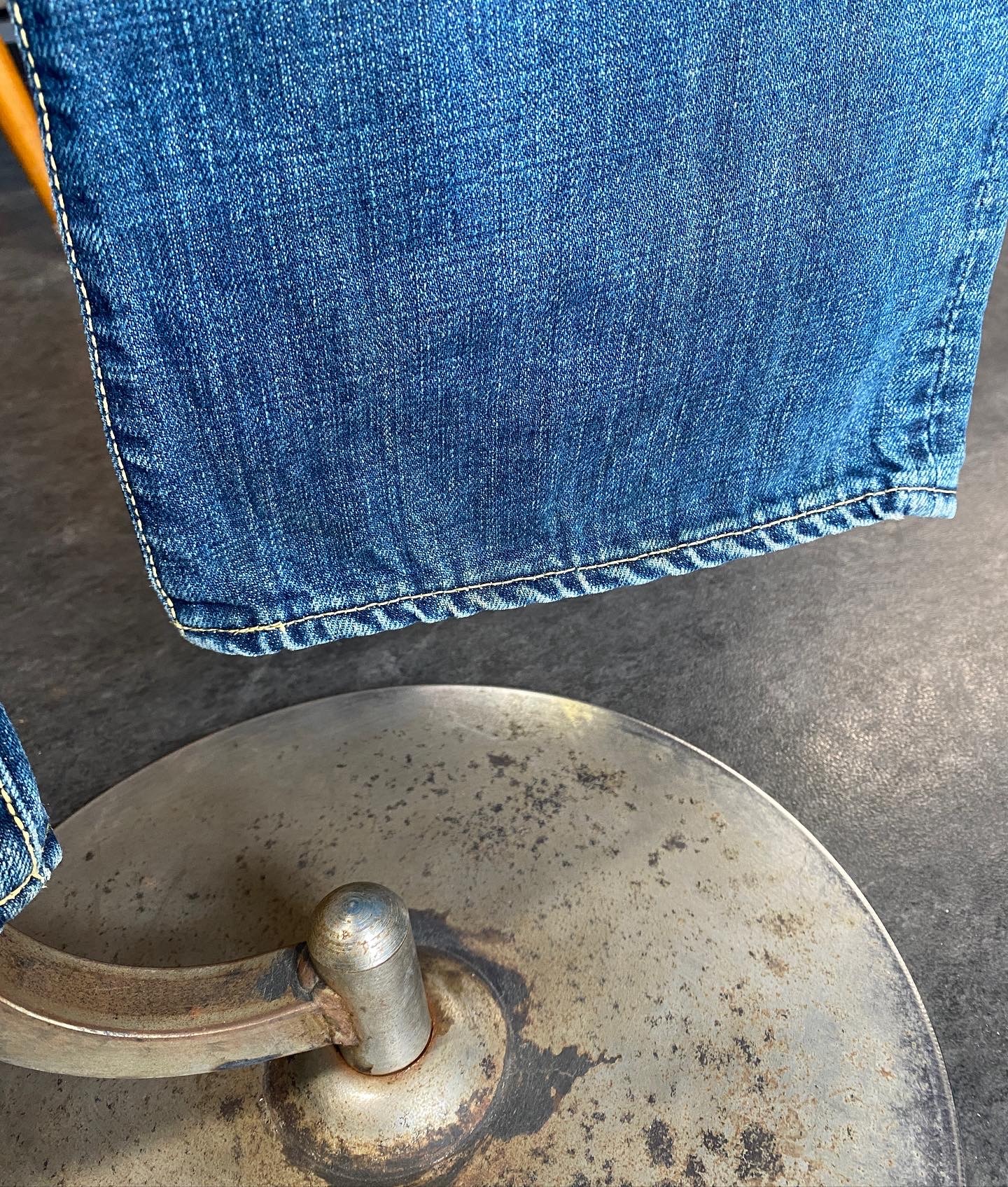 リアルファーのフード付きピッグレザーのダウンは、袖の稼動域は雰囲気よくエイジングしており、袖と裾はリブ仕様なのがバイカーの為のポイント☝️インナーはネクストシーズンも視野に入れたインディゴ染めのコットンTシャツ、バインダーネックで襟首周りも強くハードに着倒し経年変化が楽しみな一枚👍ジーンズはフロントが立体的にパターンされた、モーターサイクル用でシルエットはブーツカット👖必需品のグローブは、3☆☆☆がインパクトなブラック×レッドの80s頃のジャパンメイドのレザーグローブ👍春先のツーリングウェアを一新するのも新鮮では無いですかね😎