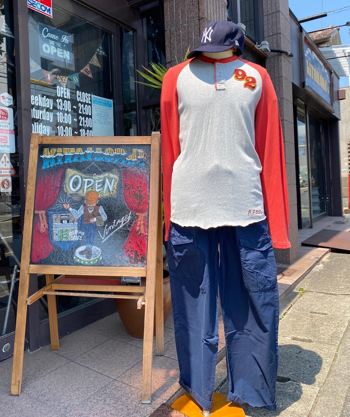 ソフトタッチのコットン素材のラグランヘンリーネックはアバクロンビー🇺🇸春夏に活躍するライトオンスなコットン素材のカーゴパンツはアーバンインスティンクト🇺🇸アクリルウール混紡のキャップはニューエラ🇺🇸キャップは店頭出して直ぐにholdになったので販売は出来ませんが、ヤンキースの人気とニューエラのUSA製の注目度を再認識しました👌…K様シッカリとお取り置きしておきます🤠トップス、パンツ共に1ウォシュの未着用アイテムになるので状態も良いです👍