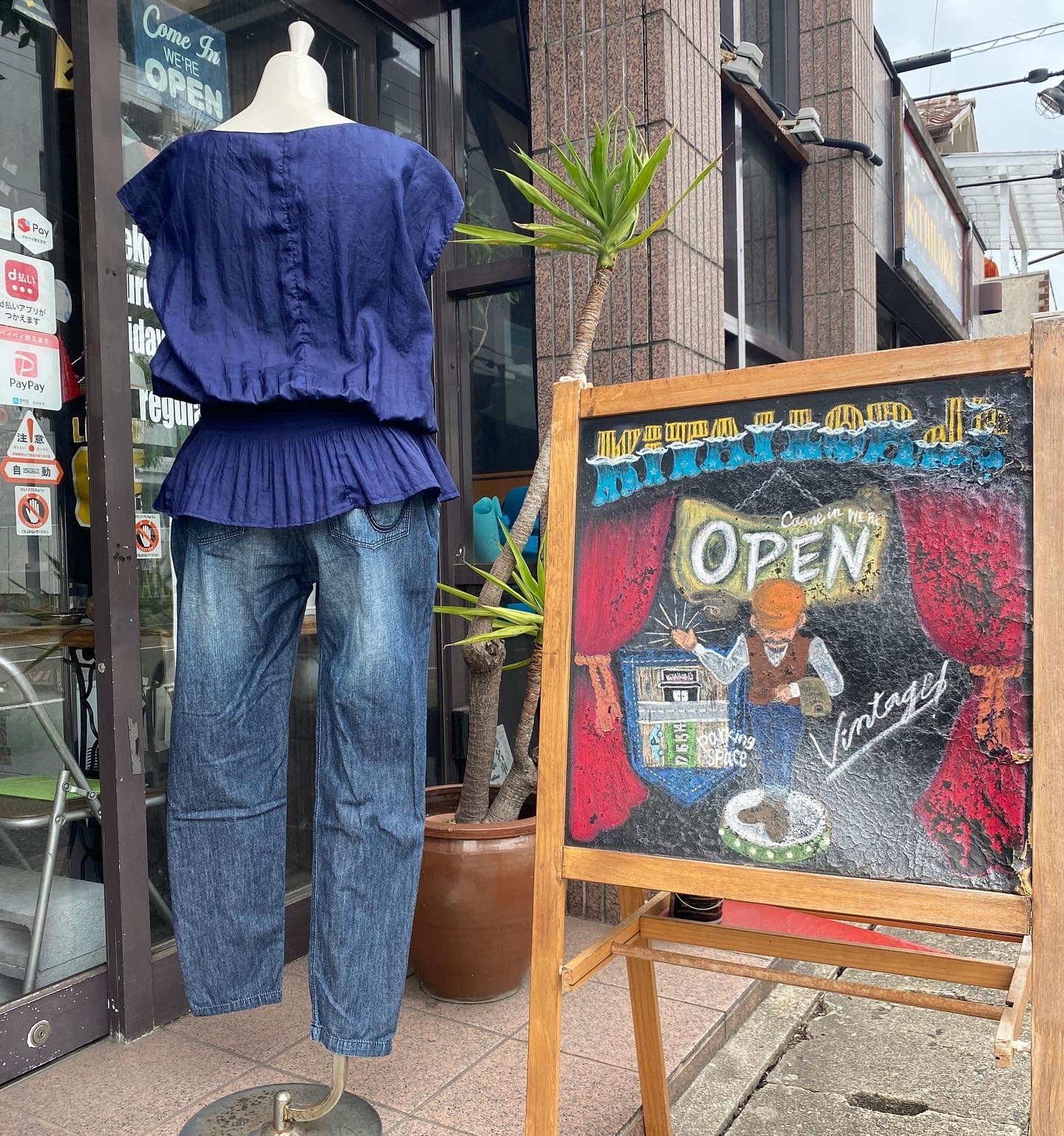 昨日の【番外編】投稿のオリックスバファローズのチームカラー、ダークネイビー色でまとめてます🤠トップスはウエストラインにリブが入った女性らしいシルエットのノースリーブカットソー、パンツはリオデジャネイロ発のカジュアルブランドのテーパードジーンズ👖薄手の生地感で夏でもストレス無くサラッと履けそうな質感です🇧🇷