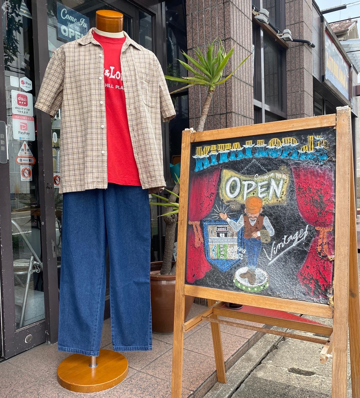 この所の猛暑続きで自分自身はハーフパンツにサンダルと、ファッションをサボりがちでは有りますが、紹介用のコーデは何時もそぉ言う訳にはいかないんで、今日も極力涼しさを感じれるアイテムを使って👌ボックスシルエットのシャツはリネンコットン、トラウザーパターンのパンツはソフトジーンズとブランドタグに表記も有るようにテンセルコットンのインディゴ染めパンツ、速乾性に優れた素材でこの時期なら洗濯しても1時間も有れば乾くようなドライ素材👍インナーには情熱の赤を使って差し色に❤️🔥