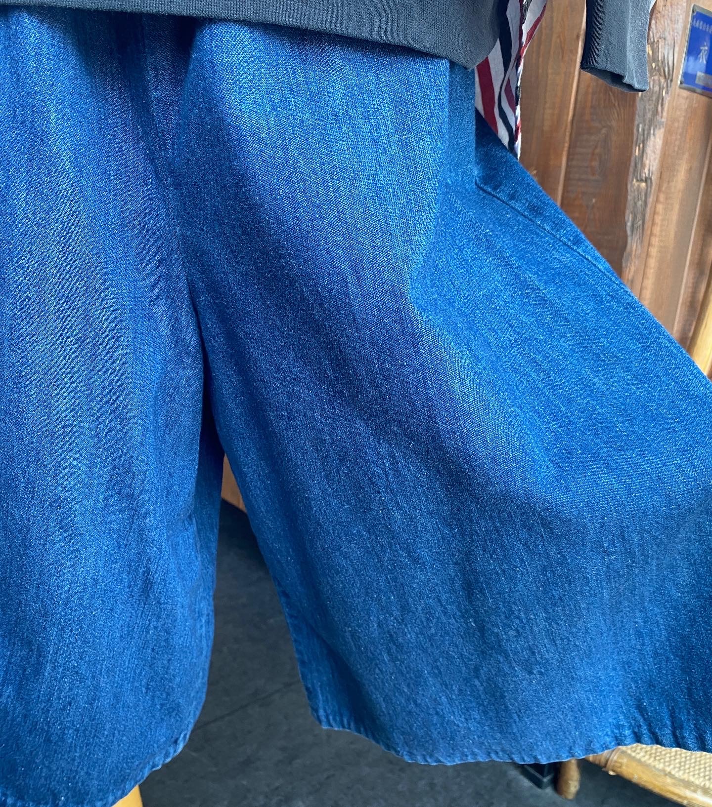 色濃いデニムガウチョパンツに、九分袖パーカーと今期注目アイテムのストライプシャツの重ね着コーデ👌今日みたいな陽気ですとインナーにはTシャツでも十分ですが…秋を見越したパーカーで👍