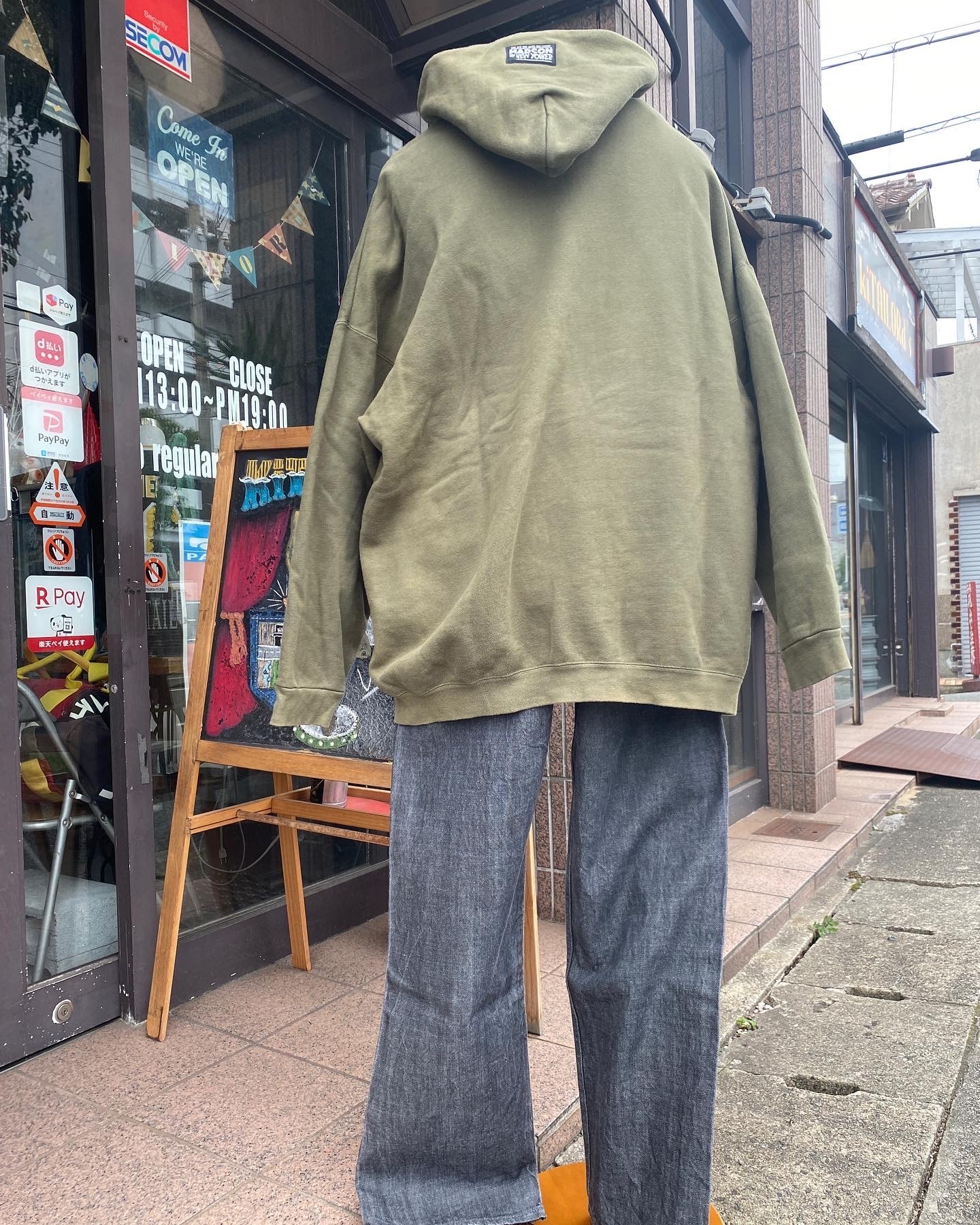 ベギンで有名なヒップホップアーティスト、マッドコン🎤🎤元々はTシャツでしたが、ヘビーウェイトのスウェットパーカーに当店でリメイクしたオリジナルの一枚🪡🤠🧵オーバーサイズのリーバイスのブラックデニムと合わせてストリートな印象に👌