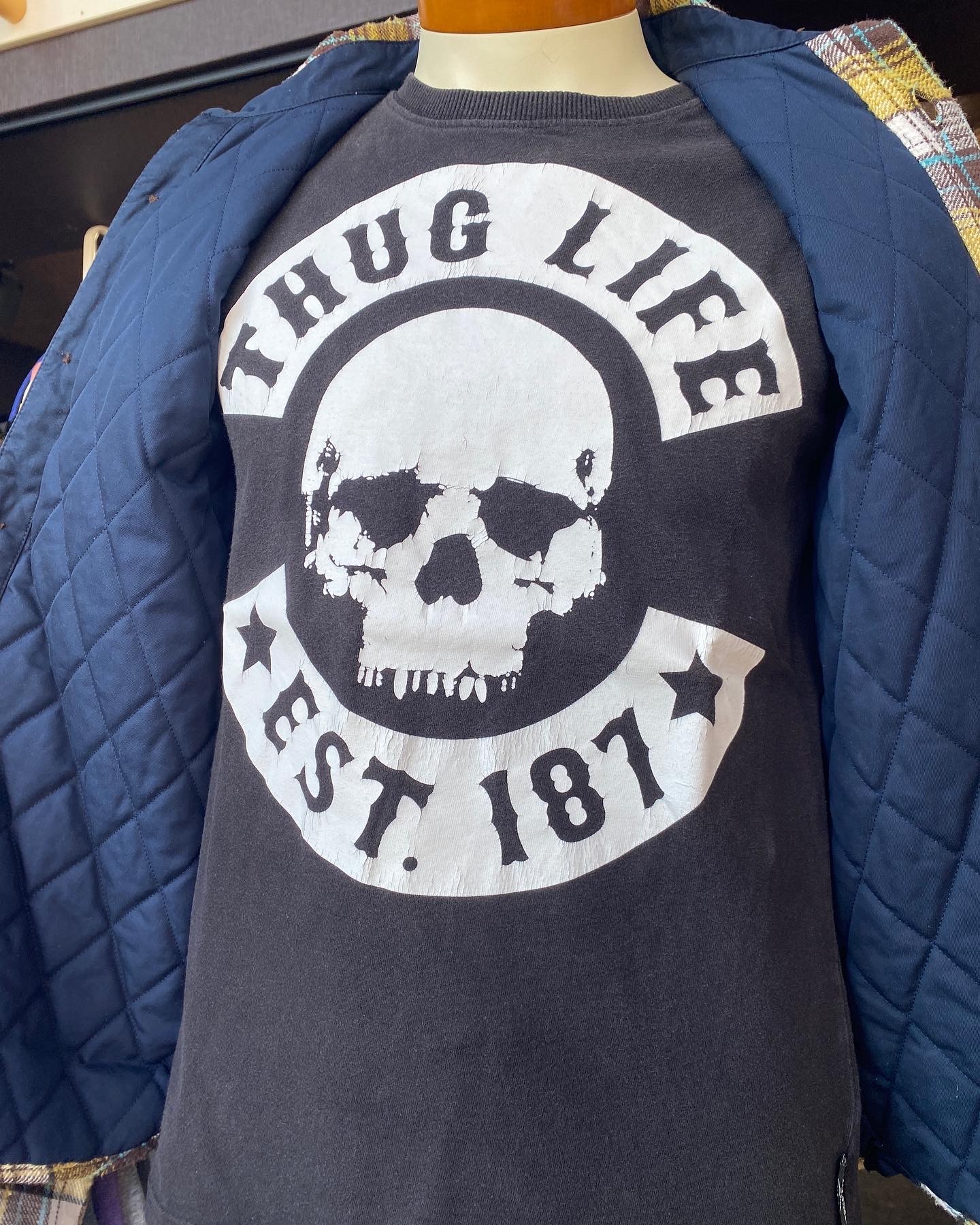 中綿入りでアウターとしてもインナーとしても使えるチェックパターンのシャツに、💀プリントがインパクトのTシャツ、ジーンズは濃紺で緩やかなブーツカット👖国民的に有名で女性陣には絶大な人気のあの人も好みそいなスタイル…モテたい男性陣先ずはファッションから入って気分上げてみるのもありですよ🤠👍