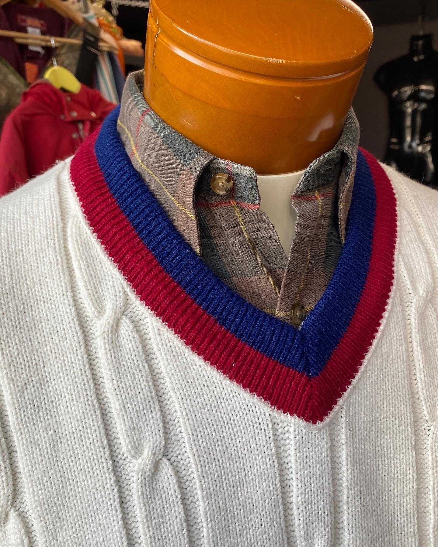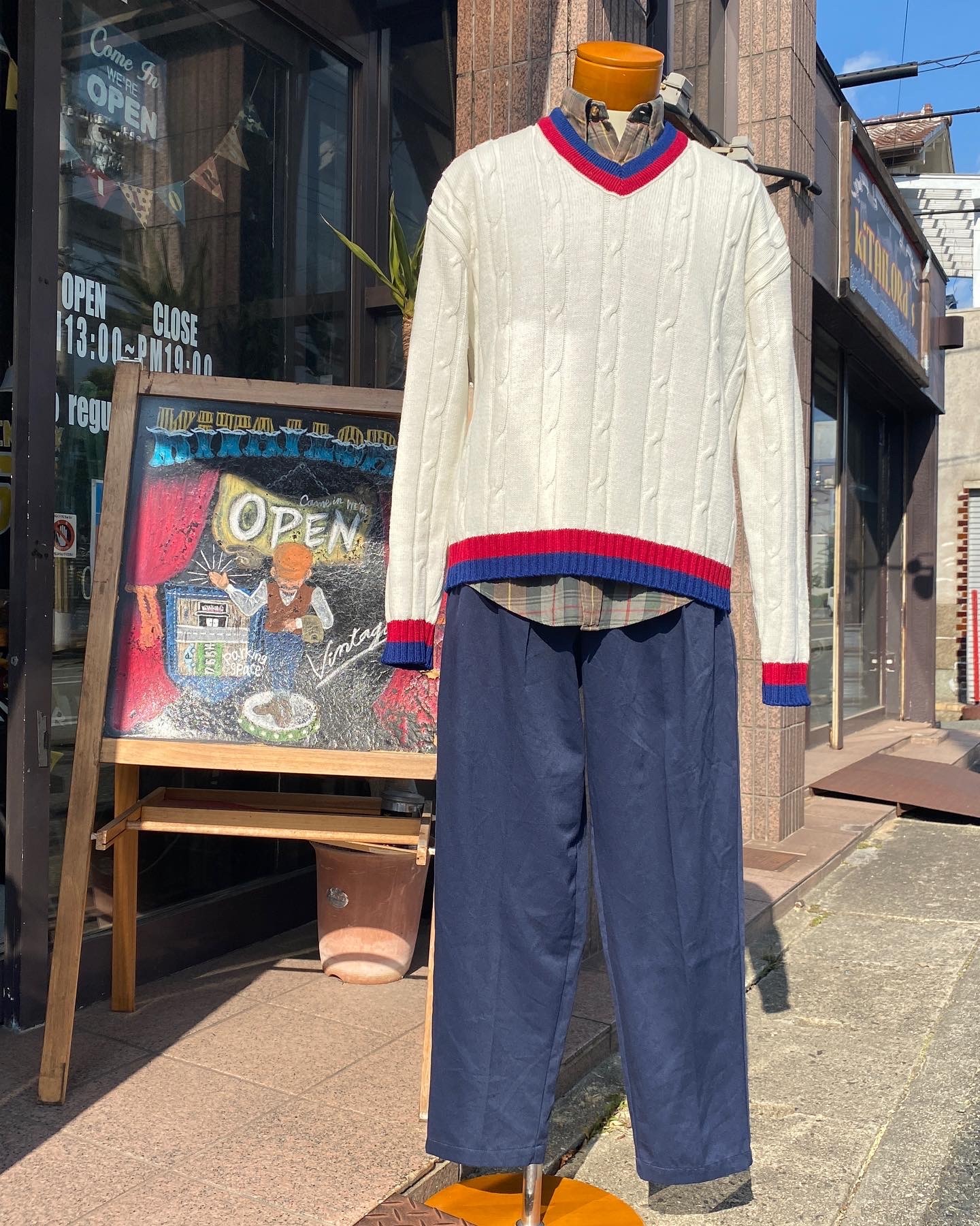 プリタンの60年代ヴィンテージのVネックアクリルニットに、00年代からのブルックスブラザーズのボタンダウンシャツ、テーパードの効いたポリコットンのスラックス、アイビールックでまとめてますが、年代が違っても定番のアイテムは流行等関係無くまとまった印象になりますね👍