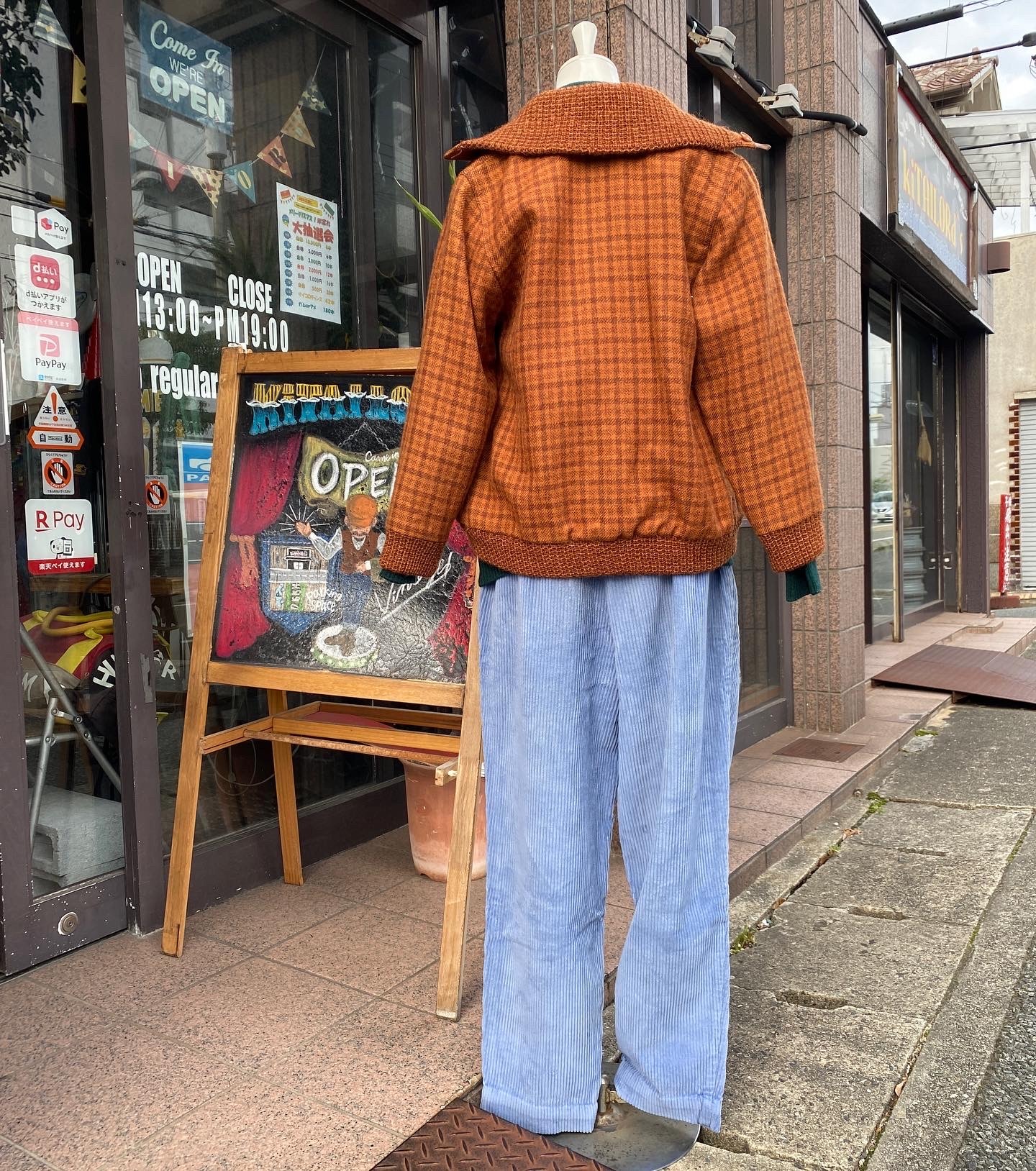 フランスファブリックを使用したウールブルゾンにポロシャツ同様なパターンのラムズウールのフェアアイルニット、太畝コーデュロイのテーパードパンツ、ヘビーで無い分着疲れし難い見た目より暖かいウィンタースタイル❄️