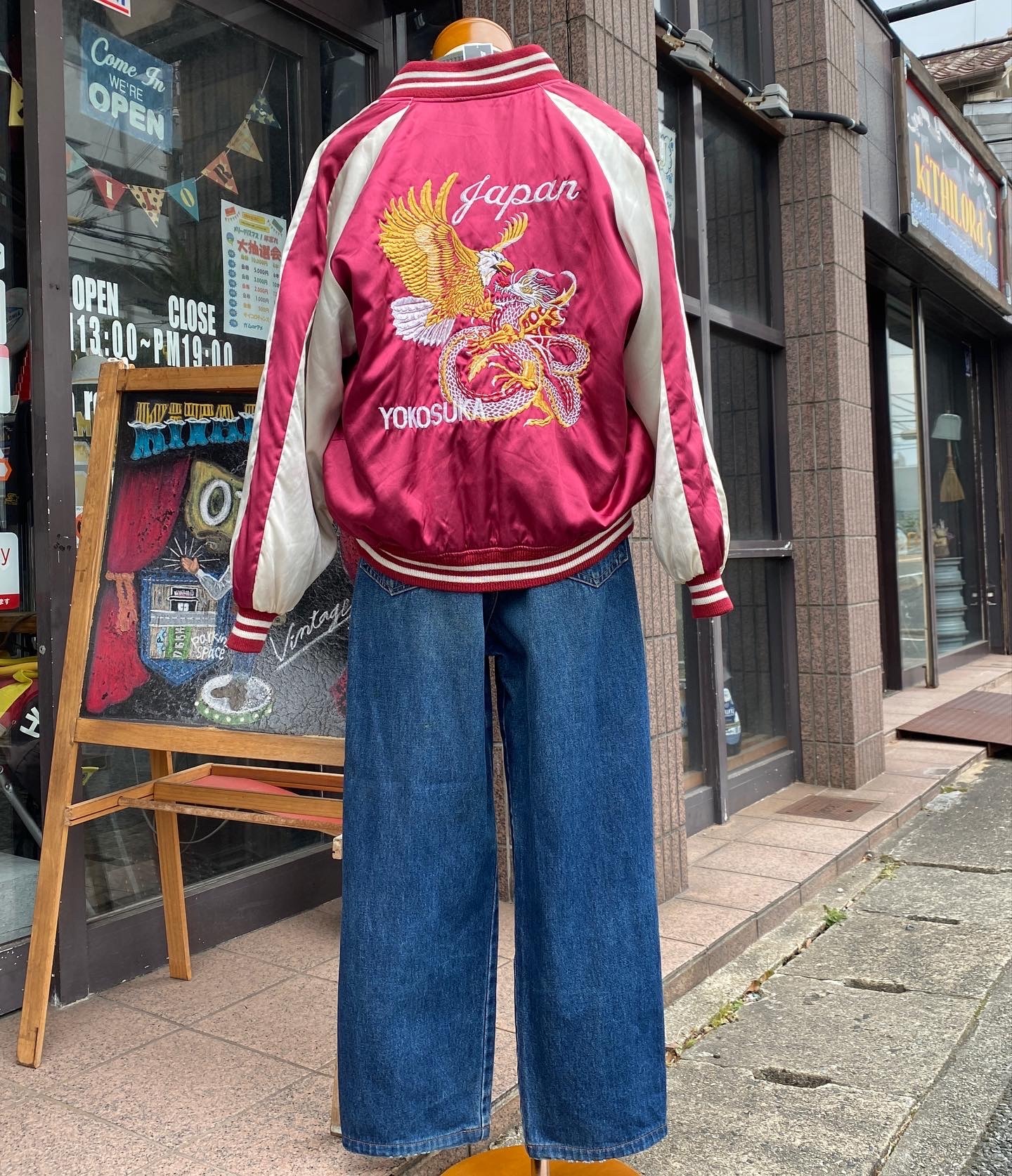 90年代のアイテムでまとめて🤠刺繍と切り替えられたボディーのアクリルウールのニットにデザイン性も有るワイドストレートのジーンズ👖軽く羽織れる横須賀ジャンパー…ヴィンテージやアメカジブランドだと着丈やアームホールのバランスでスタイリングも限られてきてしまいますが、若い世代やコリアンファッションが好きな人には案外オススメなシルエット🤔とりあえずスカジャンを試してみたいって人に🤠👍