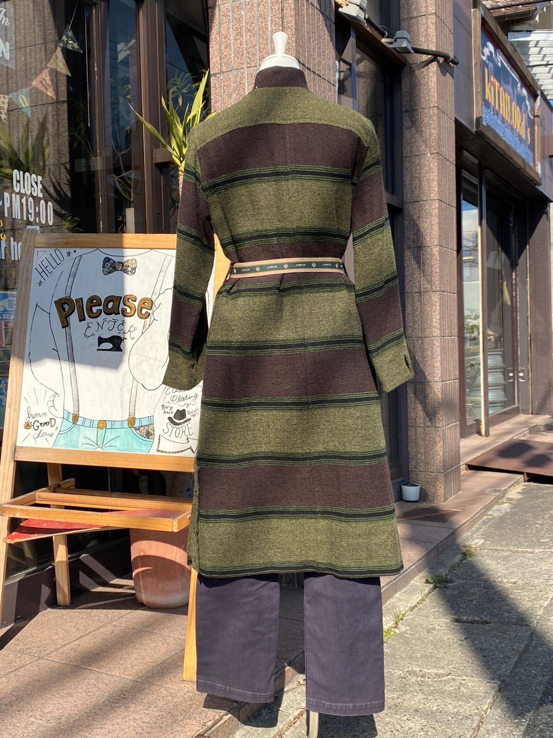 ネイティブっぽいボーダーパターンのウールワンピースにクロップドトラウザーパンツ…ハイウエストラインでベルトを締めれば引き締まった印象で足長効果も抜群です🤠👍