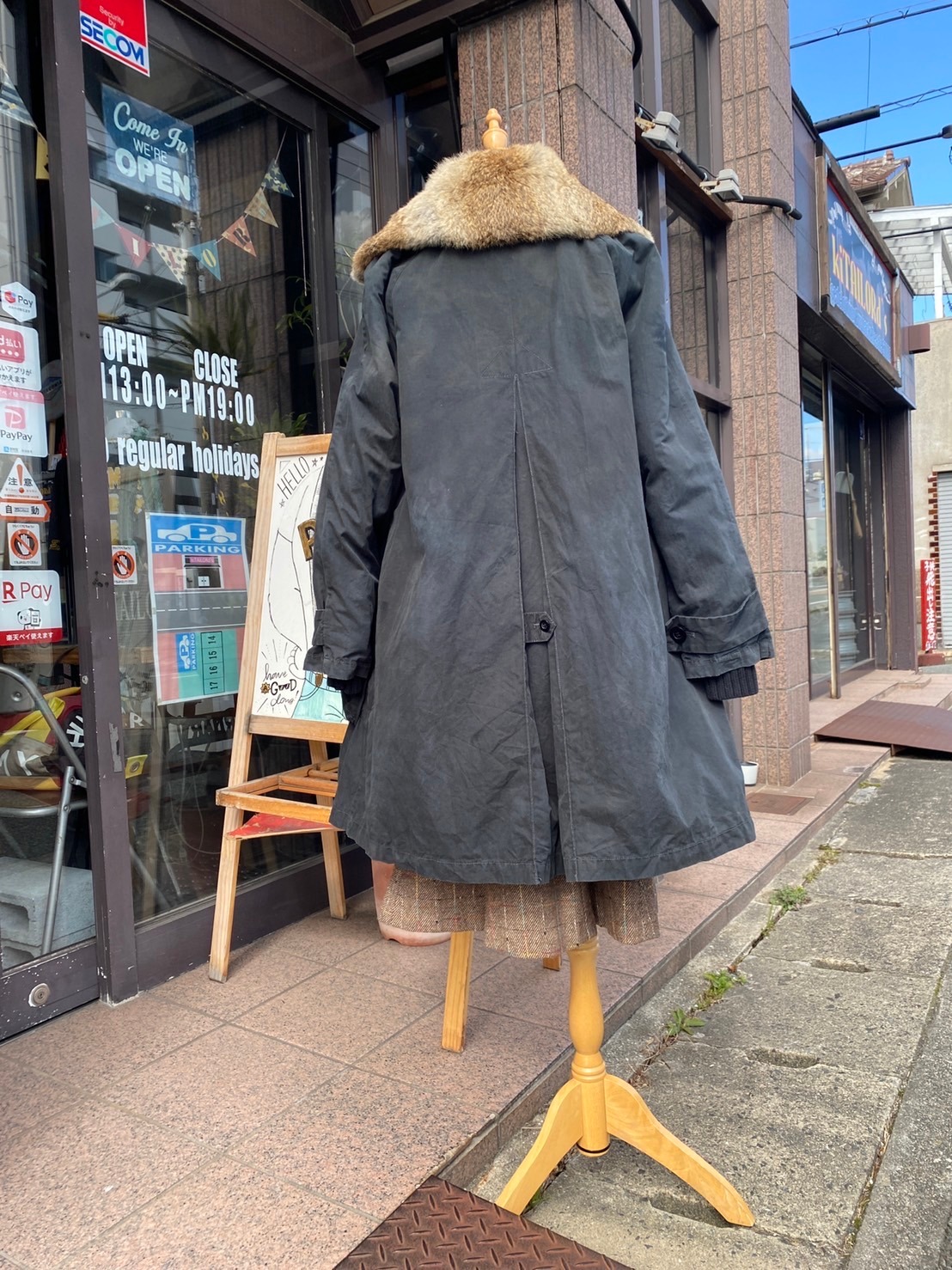 冬〜春…使い方次第でかなり多機能なミリタリーデザインのコットンコート、毛足の長いフリースライナーに襟元のラビットファーを取り外せば春先にも使えるライトオンスな質感で、こなられた感じでフェードアウトしたブラックボディも魅力的🤠ライナーも取付はボタンとボタンホールになっているので、ライナー単体でもしっかりボタンも付けて着れる日本ブランドらしい考えられたパターン💮インナーにはUSAFのA-1デザインのコットンニット、ネップ感の有るウール混紡の日本製スカート🇯🇵ブラックとベージュ2カラーでまとめてます👌