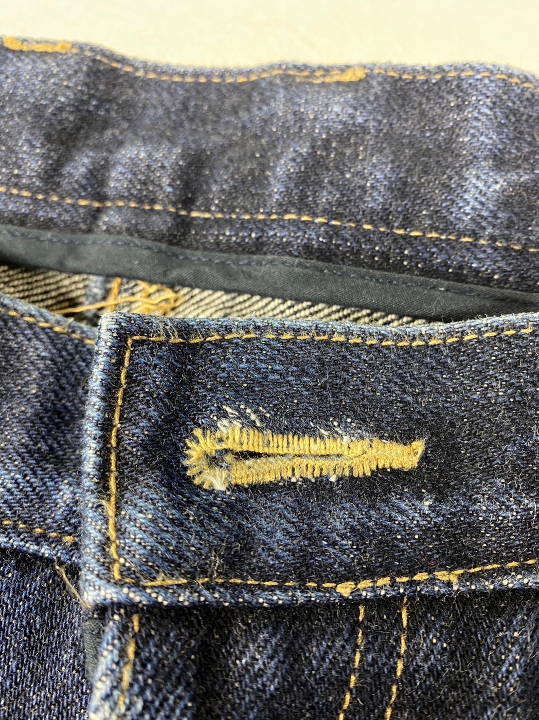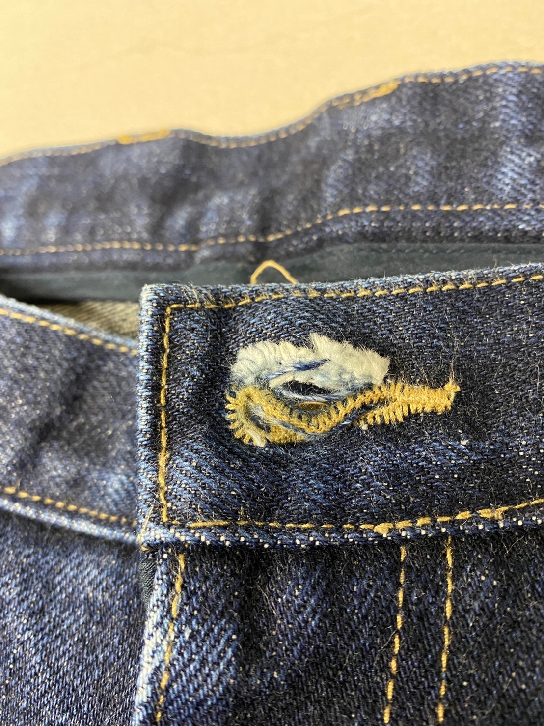 お客様依頼のPAIR SLOPE 21ozジーンズのトップボタンホールリペア🪡🧵