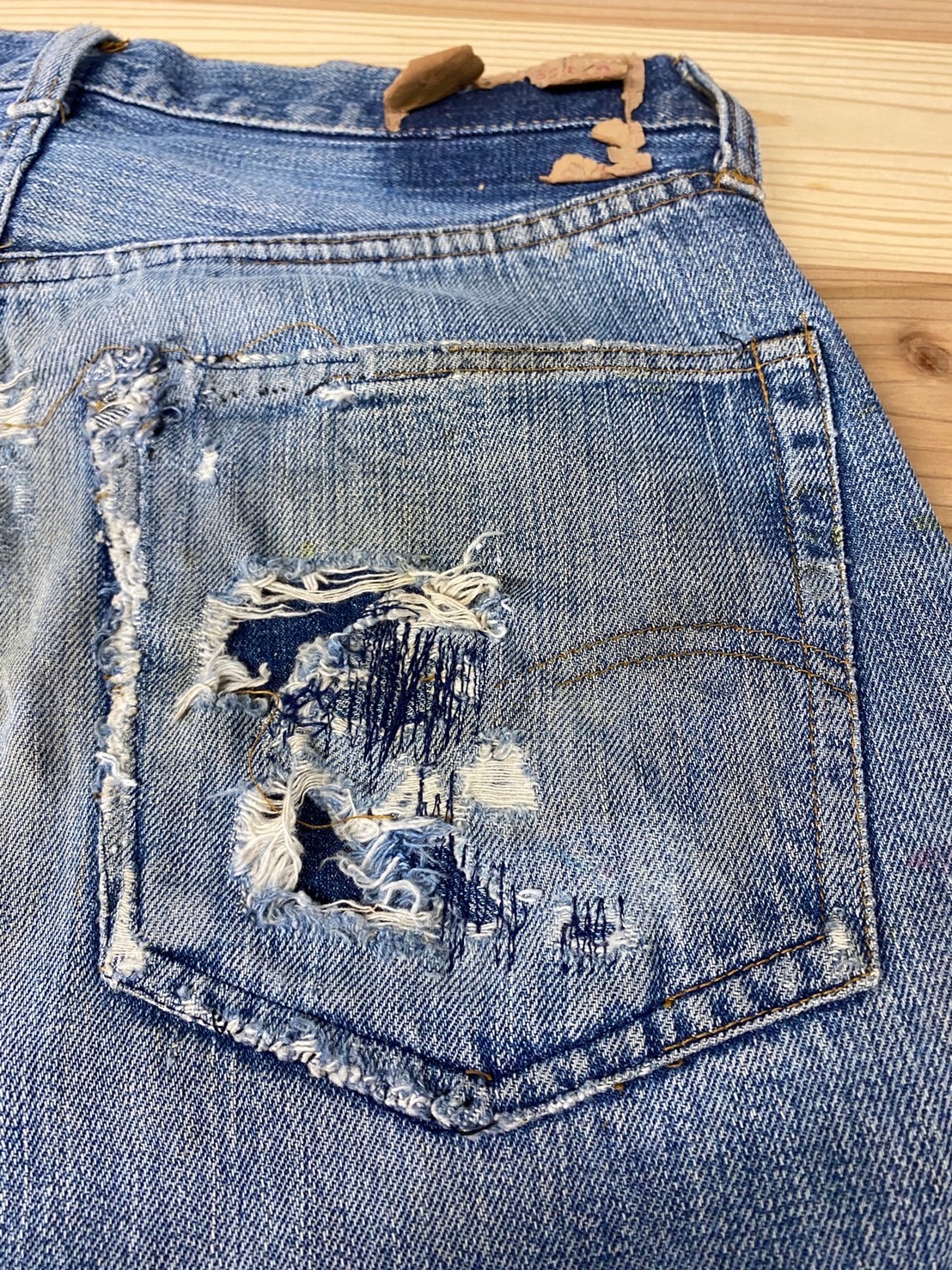 リペアを繰り返し風格の有るリーバイス501 66前期👖安心しながらも気軽に履きたいとのご要望で、リペアお手伝いさせていただきました🙏お手持ちのお洋服で気になる事が有りましたら、あんなことやこんなことお気軽にお問い合わせください👍