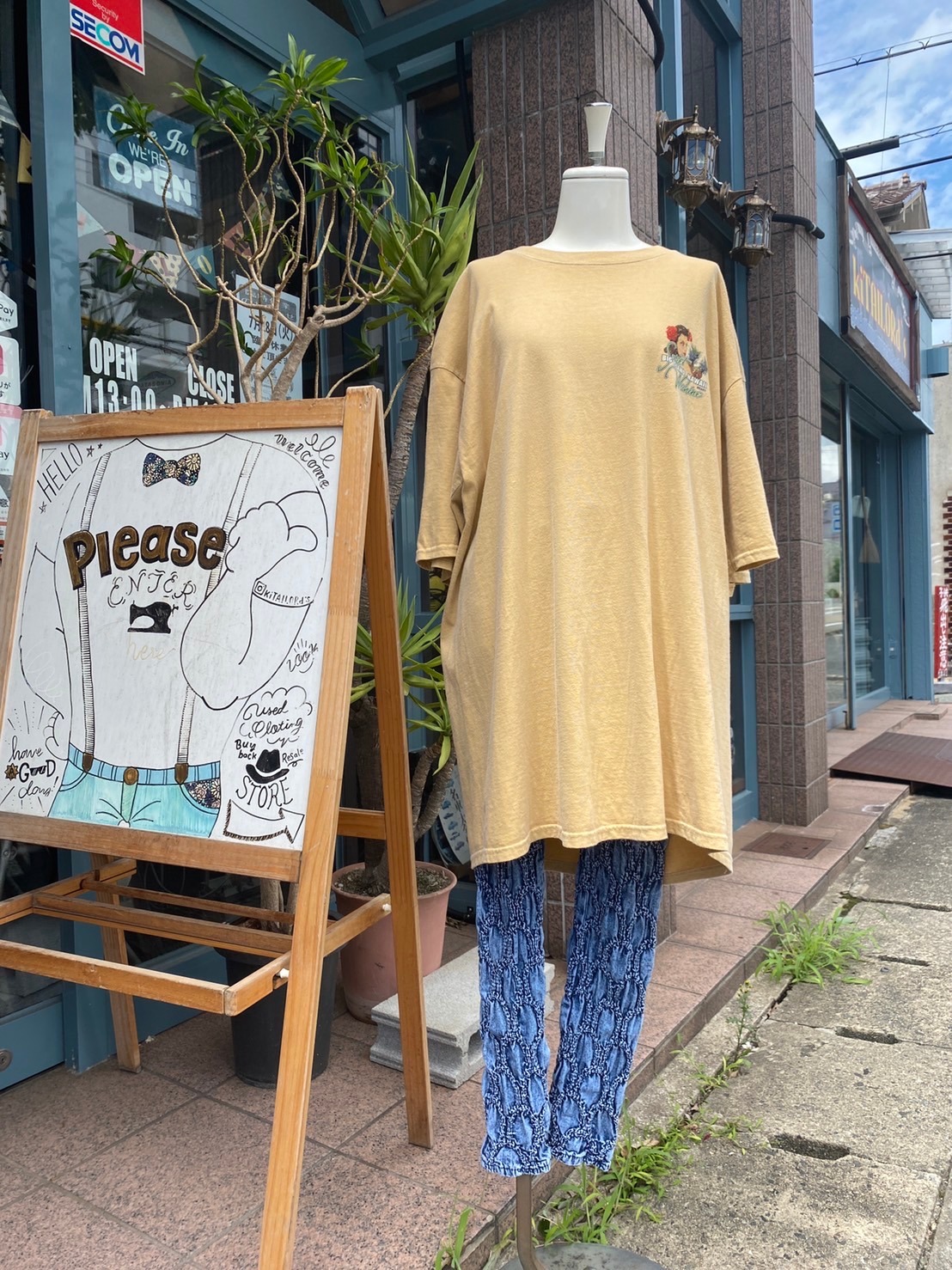 ビール派の人は夏になると昼から呑みたくなるこの暑さですが、呑まずともビールを感じれるビール染めのTシャツ🍺ハワイアンデザインのビッグサイズは夏の色々なシーンに👌ボトムスにはインディゴ染めのレギンス、立体的なデザインは単体での着用でも、重ね着などにも有ると重宝するリーズナブルな1本です🤠👍