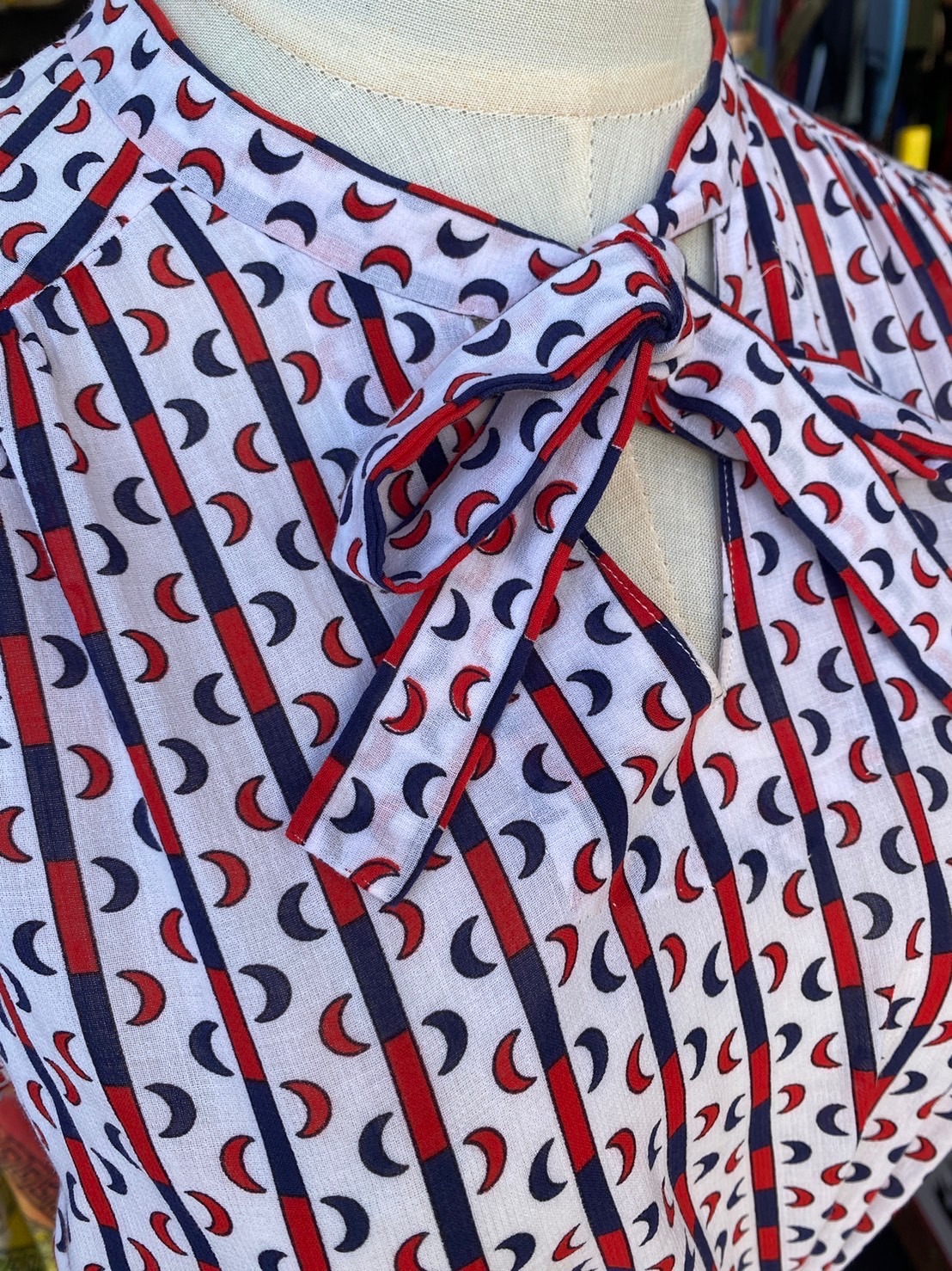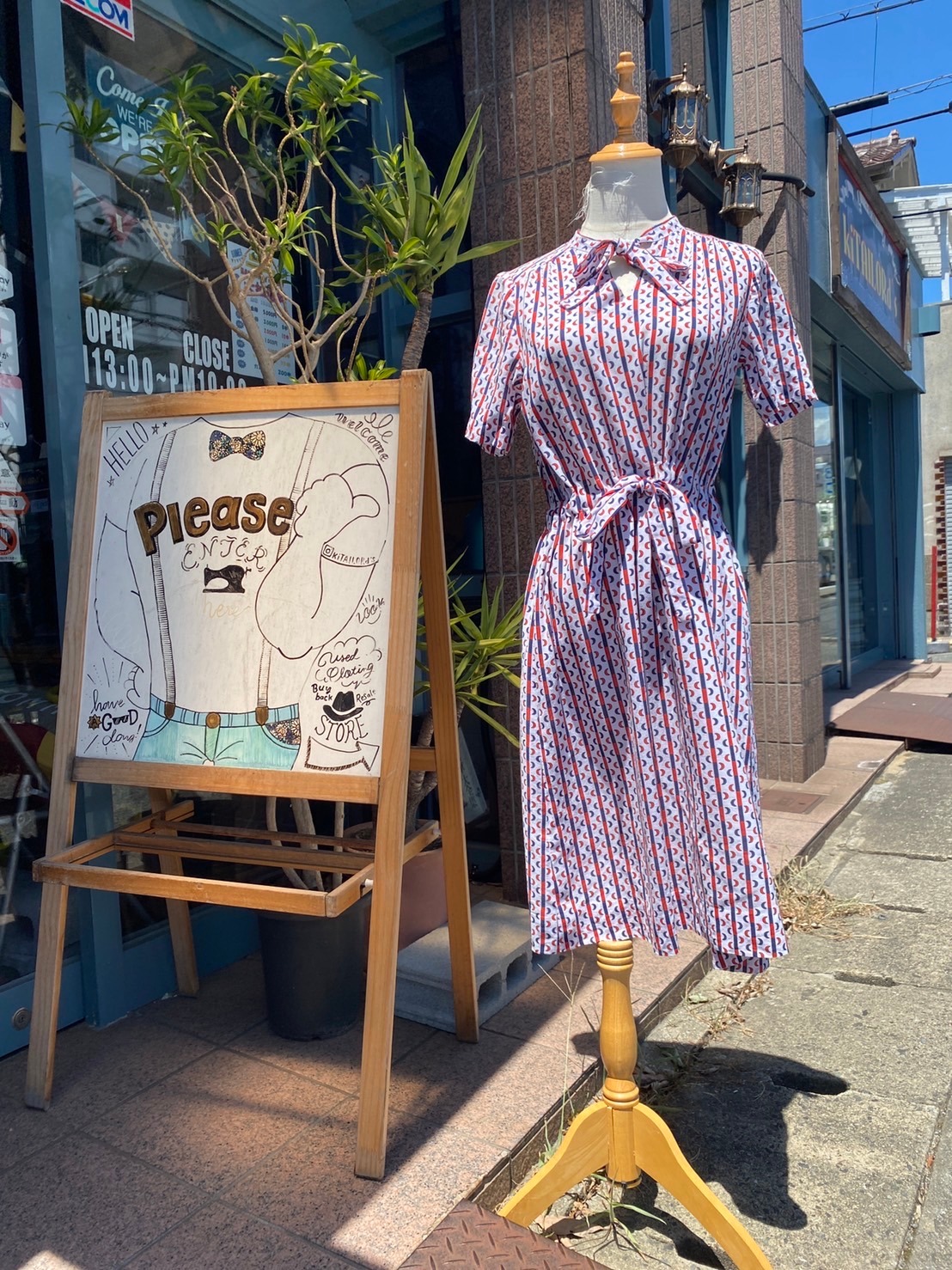 上下のコーディネートを考えなくて良いワンピース👗80年代頃のハンドメイドの一点物で、🌙のようなトリコロールストライプの生地選定もさることながら、仕立てや縫製も非常に丁寧に作られた一着🤠腰下には裏地もついてます👌人とは被らない素敵なワンピース…是非手に取り体感してください👍