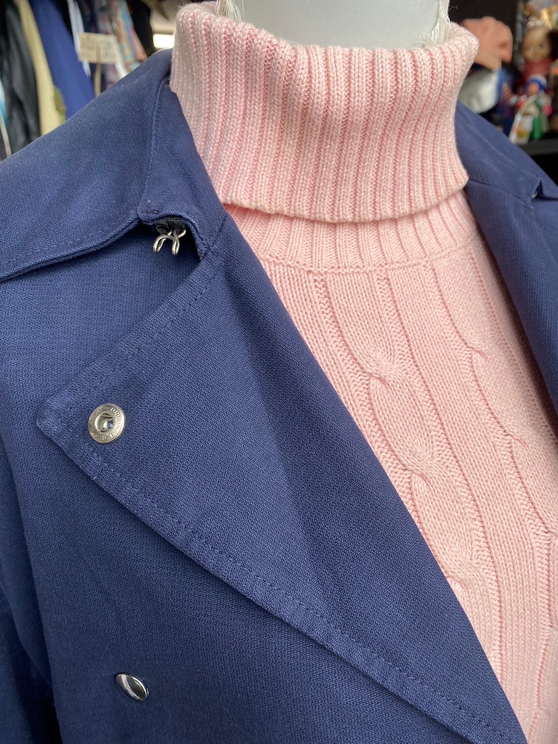 ベビーオンスのコットンに着脱可能なウールライナーが付くトレンチコートに、春が待ち遠しくなる色合いのタートルネックのコットンケーブルニット🌸シックなカラーのチェックパターンながら、フロントスリットがプリーツになったさりげなさにポイントを感じるウールスカートで、今日は少し大人の女性にオススメしたいイメージで👍