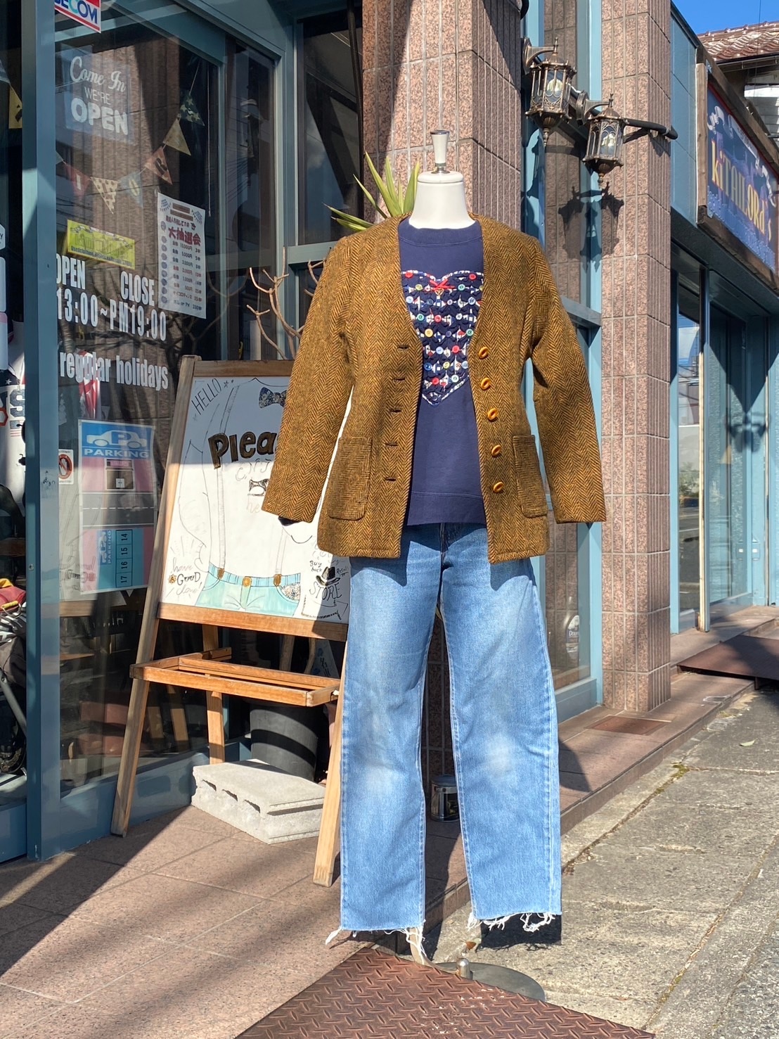 個人的に好きな感じの古着女子💃🏻丁寧に仕立てられたオーダーメイドのツイードウールのジャケットに、根気よくハンドメイドリメイクされた90年代を感じるスウェットシャツ、ジーンズは定番の501のレディースライン👖ジャケットおおよそMサイズ、スウェットLサイズ、ジーンズ9表記の実寸26インチ…更なる詳細についてはお気軽にお問い合わせください📩📞🤠