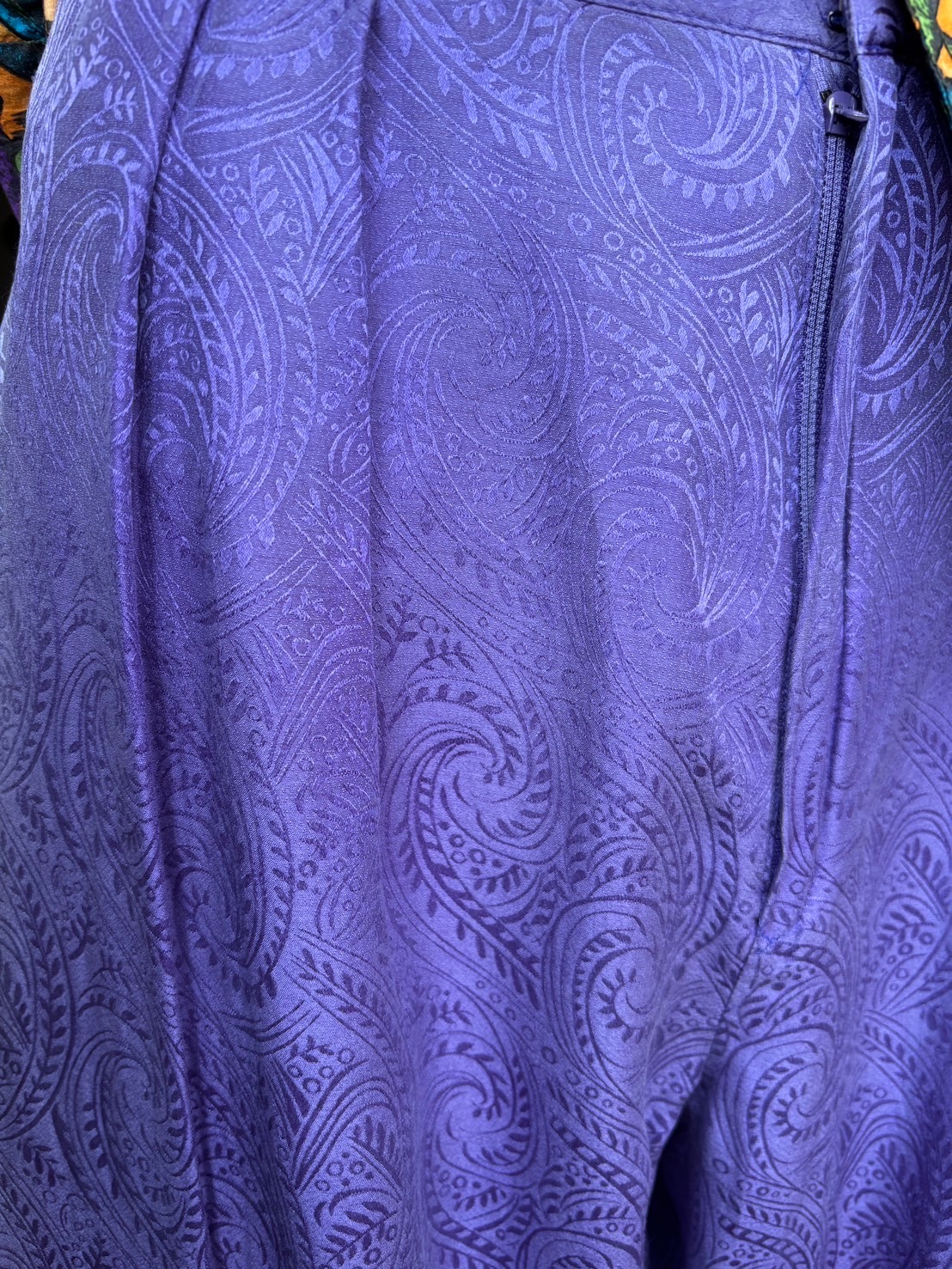 上下共にレディースラインで90年代のMade in HONG KONG🇭🇰植物総柄でジャケットのような前仕立てのコットンシャツ、織模様にシルク85%ウール15%で高級感漂うパンツ…ウール感はほとんど感じ無いのでサラッと夏に☝️シャツMサイズ、パンツ10表記🤠更なる詳細についてはお気軽にお問い合わせください📩📞🤠